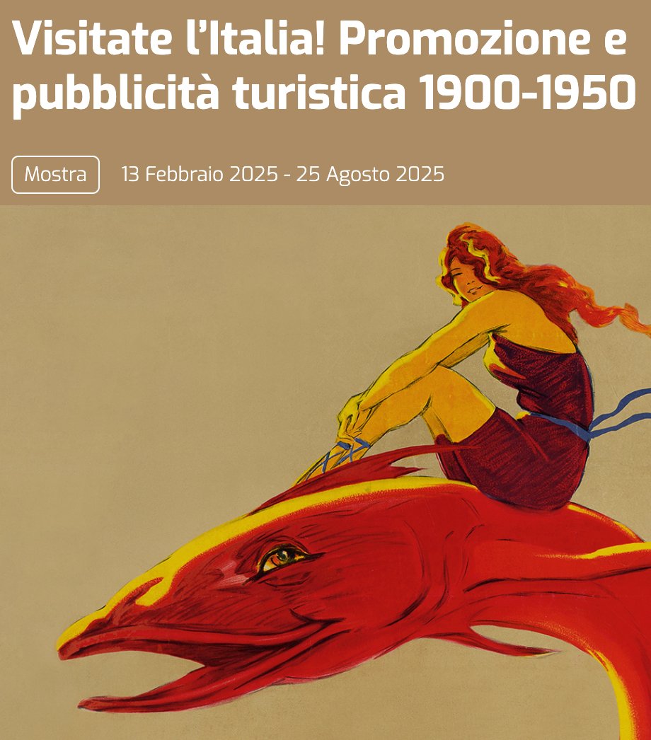 Fino al 25 agosto 2925, Palazzo Madama – Museo Civico d’Arte Antica di Torino presenta la mostra “Visitate l’Italia! Promozione e pubblicità turistica 1900-1950”. Un racconto della promozione turistica italiana, dalla fine dell’Ottocento ai primi anni della ricostruzione dopo la Seconda Guerra Mondiale. La mostra raccoglie oltre duecento manifesti, centinaia di guide e pieghevoli illustrati, accompagnati da tanti oggetti iconici.